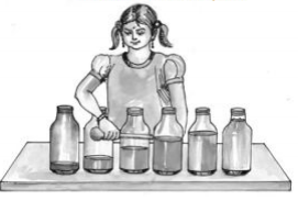 - முதல் புட்டியில் முழுவதுமாக தண்ணீ ரை நிரப்பு. அடுத்தடுத்து வரும் புட்டிகளில் சற்று குறைவாக நிரப்பிக் கொள்.