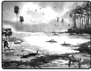 - குளத்தின் கரையில் ஓர் ஆலமரம் உள்ளது.
