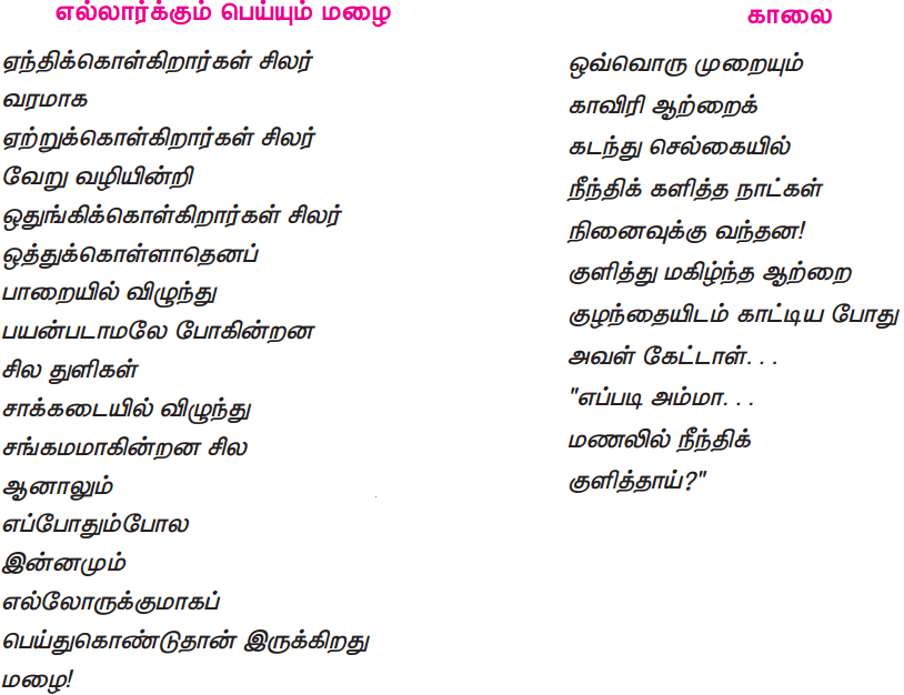 வாணிதாசன் இயற்கைப் புனைவுகளைப் பாடுவதில் வல்லவர். அவரது கவித்திறனுக்கு இப்பாடல் சான்றாக அமைவதோடு, அனைத்து நயங்களையும் பெற்று ஒளிர்கிறது.