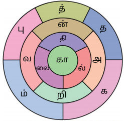 வட்டத்திற்குள் உள்ள எழுத்துகளைக் கொண்டு சொற்களை உருவாக்குக.