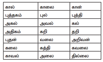 (இன்னோசை, பேரொளி, சிற்றோடை, பேரின்பம், பைங்கிளி, பேரூர், செந்தாமரை]