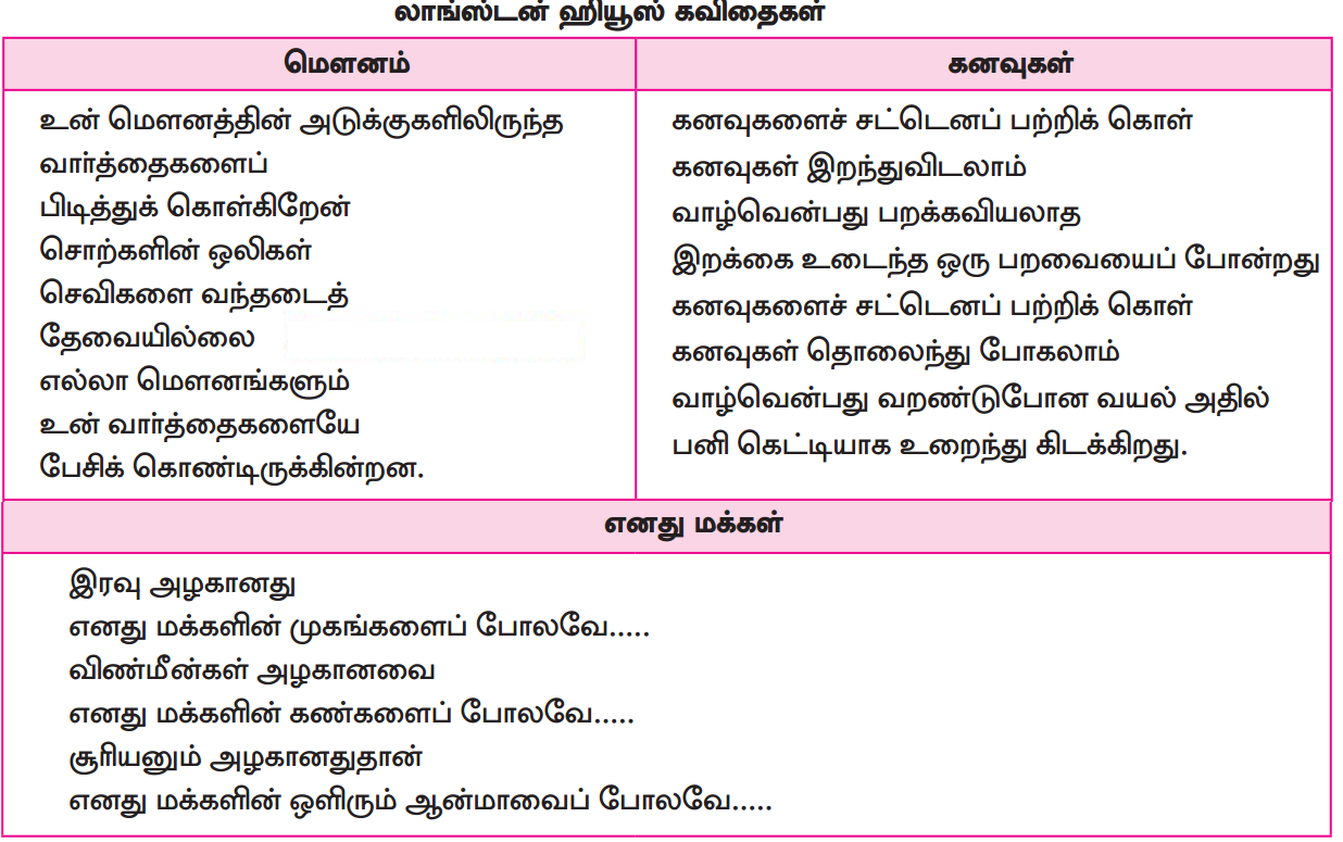 தமிழில் மொழிபெயர்க்கப்பட்ட கவிதைகளில் உங்கள் மனம் கவர்நத சிலவற்றை வகுப்பறையில் படித்துக்காட்டுக.