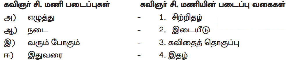 இ) கவிஞர். சி.மணி, வரும்போகும்’ என்னும் சிற்றிதழை நடத்திவந்தார்.