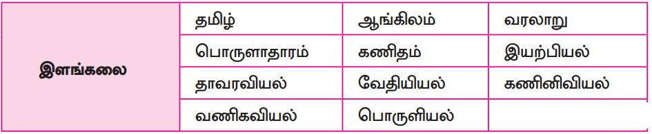 அருகிலுள்ள கல்லூரிக்குச் சென்று அங்குள்ள பாடப்பிரிவுகளை அட்டவணைப்படுத்துக.