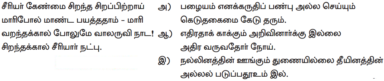 அ) தீயினத்தின் துணை – நல்லினத்தின் துணை