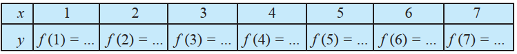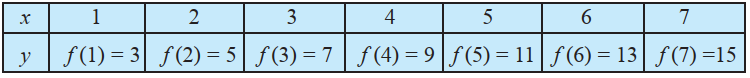 Let $\mathbf{N}$ be the set of natural numbers. Define a real valued function $f: \mathbf{N} \rightarrow \mathbf{N}$ by $f(x)=2 x+1$. Using this definition, complete the table given below.