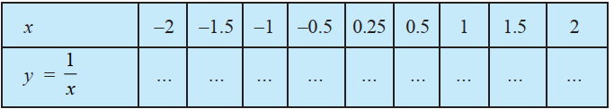Define the real valued function $f: \mathbf{R}-\{0\} \rightarrow \mathbf{R}$ defined by $f(x)=\frac{1}{x}$, $x \in \mathbf{R}-\{0\}$. Complete the Table given below using this definition. What is the domain and range of this function?