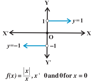 is called the signum function. The domain of the signum function is $\mathbf{R}$ and the range is the set $\{-1,0,1\}$. The graph of the signum function is given by the Fig 2.14.