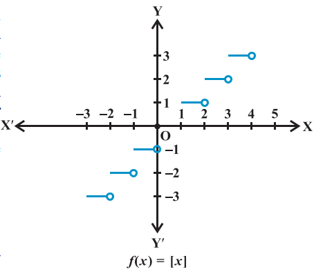 (vii) Greatest integer function The function $f: \mathbf{R} \rightarrow \mathbf{R}$ defined by $f(x)=[x], x \in \mathbf{R}$ assumes the value of the greatest integer, less than or equal to $x$. Such a function is called the greatest integer function.
