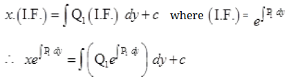 $\text {We know that general solution of differential equation of the type } \frac{d y}{d x}=\mathrm{P}_1 x=\mathrm{Q}_1 \text { is }$