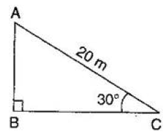 A circus artist is climbing a $20 \mathrm{~m}$ long rope, which is tightly stretched and tied from the top of a vertical pole to the ground. Find the height of the pole, if the angle made by the rope with the ground level is $30^{\circ}$ (see figure).