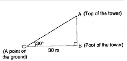 The angle of elevation of the top of a tower from a point on the ground, which is $30 \mathrm{~m}$ away from the foot of the tower is $30^{\circ}$. Find the height of the tower.