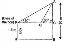 $\mathrm{AB}=30 \mathrm{~m}$ and $\mathrm{PR}=1.5 \mathrm{~m}$