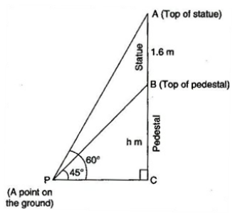 A statue, $1.6 \mathrm{~m}$ tall, stands on the top of a pedestal. From a point on the ground, the angle of elevation of the top of the statue is $60^{\circ}$ and from the same point the angle of elevation of the top of the pedestal is $45^{\circ}$. Find the height of the pedestal.