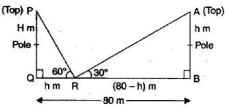 Hence the heights of the poles are $20 \sqrt{3} \mathrm{~m}$ each and the distances of the point from poles are $20 \mathrm{~m}$ and $60 \mathrm{~m}$ respectively.