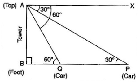 $\therefore$ Time taken by the car to travel a distance $B Q$, i.e. $\frac{1}{2} P Q=\frac{1}{2} \times 6=3$ seconds. Hence, the further time taken by the car to reach the foot of the tower is 3 seconds.