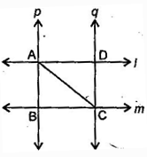$l$ and $m$ are two parallel lines intersected by another pair of parallel lines $p$ and $q$ (See figure). Show that $\triangle A B C \cong \triangle C D A$.
