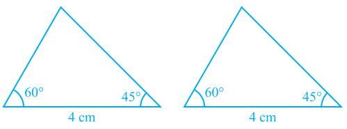 Next, try to construct the two triangles in which two angles are $60^{\circ}$ and $45^{\circ}$ and the side included between these angles is $4 \mathrm{~cm}$ (see Fig. 7.11).
