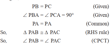 and so, $\mathrm{PA}=\mathrm{PB}$, as they are corresponding sides of congruent triangles.