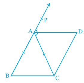 ABC is an isosceles triangle in which $\mathrm{AB}=\mathrm{AC}$. $\mathrm{AD}$ bisects exterior angle $\mathrm{PAC}$ and $\mathrm{CD} \| \mathrm{AB}$ (see Fig. 8.8). Show that