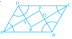 Let P, Q, R and S be the points of intersection of the bisectors of $\angle \mathrm{A}$ and $\angle \mathrm{B}, \angle \mathrm{B}$ and $\angle \mathrm{C}, \angle \mathrm{C}$ and $\angle \mathrm{D}$, and $\angle \mathrm{D}$ and $\angle \mathrm{A}$ respectively of parallelogram $\mathrm{ABCD}$ (see Fig. 8.10).