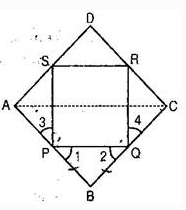 Given: $P, Q, R$ and $S$ are the mid-points of respective sides $A B, B C, C D$ and $D A$ of rhombus. $P Q$, $Q R, R S$ and $S P$ are joined.