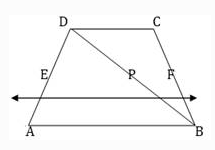 $P$ is the mid-point of $B D$ and $P F \| D C[\because E F \| A B$ (given) and $A B \| D C$ (given) $]$
