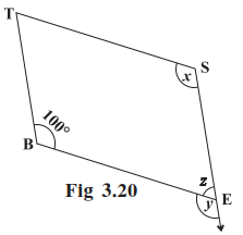 In Fig 3.20, BEST is a parallelogram. Find the values $x, y$ and $z$.