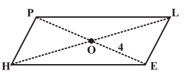 In Fig 3.25 HELP is a parallelogram. (Lengths are in cms). Given that $\mathrm{OE}=4$ and $\mathrm{HL}$ is 5 more than $\mathrm{PE}$ ? Find $\mathrm{OH}$.