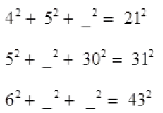 & \text {} 1^2+2^2+2^2=3^2 \\