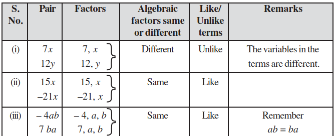 Following simple steps will help you to decide whether the given terms are like or unlike terms: