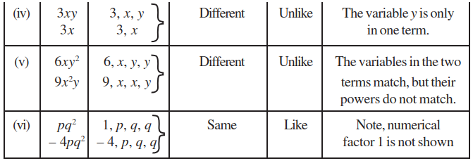 (iii) Next, check the powers of each variable in the terms. They must be the same.