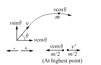 Applying conservation of linear momentum at the highest point
