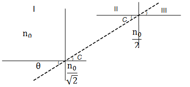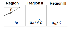 A beam of light is travelling from region II to region III (see the figure). The refractive index in region I, II and III are