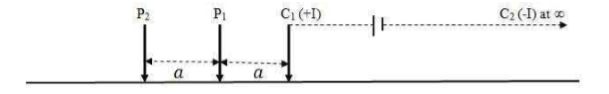 The geometrical factor for the following electrode configuration is