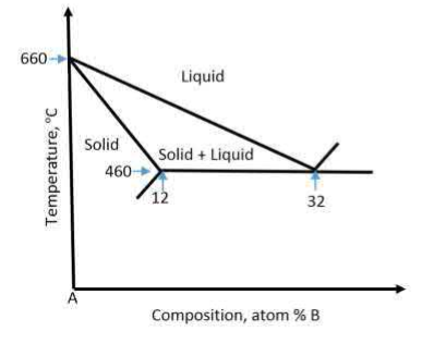 In the A-rich end of the A-B binary eutectic phase diagram (shown below), the solidus and
