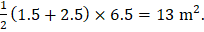 The two parallel sides of a trapezium are 1.5 m and 2.5 m. If the perpendicular distance between them is 6.5 m, the area (in m2)of the trapezium is |