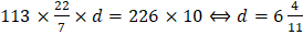 Find the diameter of a wheel that makes 113 revolutions to go 2 km 26 decametres. |