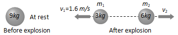 As the bomb initially was at rest therefore