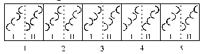 In all the pairs of figures except in (4); all the arcs except the third one are laterally inverted. Thus, the second element is formed from the first element.