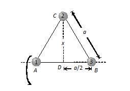 Three point masses each of mass |