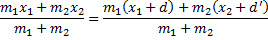 and to keep the centre of mass at the original position let second particle be displaced through distance