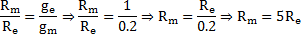Assume that the acceleration due to gravity on the surface of the moon is 0.2 times the acceleration due to gravity on the surface of the earth. If |