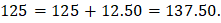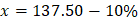 If a number x is 10% less than another number y and y is 10% more than 125, then x equals to |
