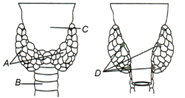 A-Trachea, B-Vocal cord, C-Thyroid, D-Parathyroid gland |