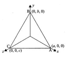 Let $\mathrm{A}(\mathrm{a}, 0,0), \mathrm{B}(0, \mathrm{~b}, 0), \mathrm{C}(0,0, \mathrm{c})$