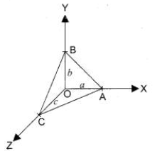 Let the required plane makes intercepts on $\mathrm{X}, \mathrm{Y}, \mathrm{Z}$-axes respectively as $\mathrm{a}, \mathrm{b}$ and $\mathrm{c}$.