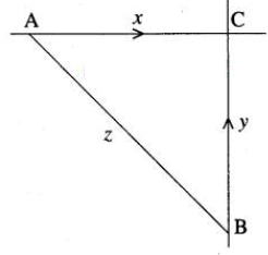 The equation that relate $\mathrm{x}, \mathrm{y}$ and $\mathrm{z}$ is given by the pythagoras theorem $\mathrm{z}^2=\mathrm{x}^2+\mathrm{y}^2$ Differentiating each side with respect to $t$,