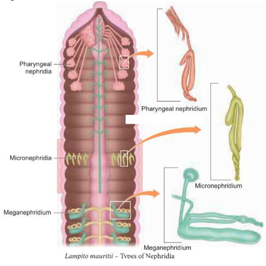 The vertical opening of the vagina is the female genital pore. A pair of spermathccae is present in the $6^{\text {th }}$ segment, which opens by a median aperture in the dorsal wall of the genital pouch. During copulation, the ova descend to