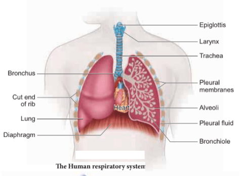 The human respiratory system constitutes the conducting zone and the respiratory zone. The conducting zone includes the external nostril, nasal cavity, pharynx, larynx, trachea, bronchi, bronchioles and the lungs which contain alveoli.